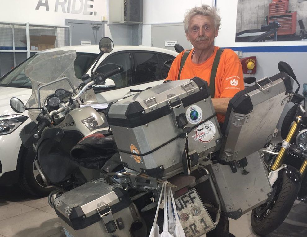 После того, как новосибирские специалисты восстановили кардан на мотоцикле, немец на «железном коне» двинулся дальше, навстречу новым приключениям.