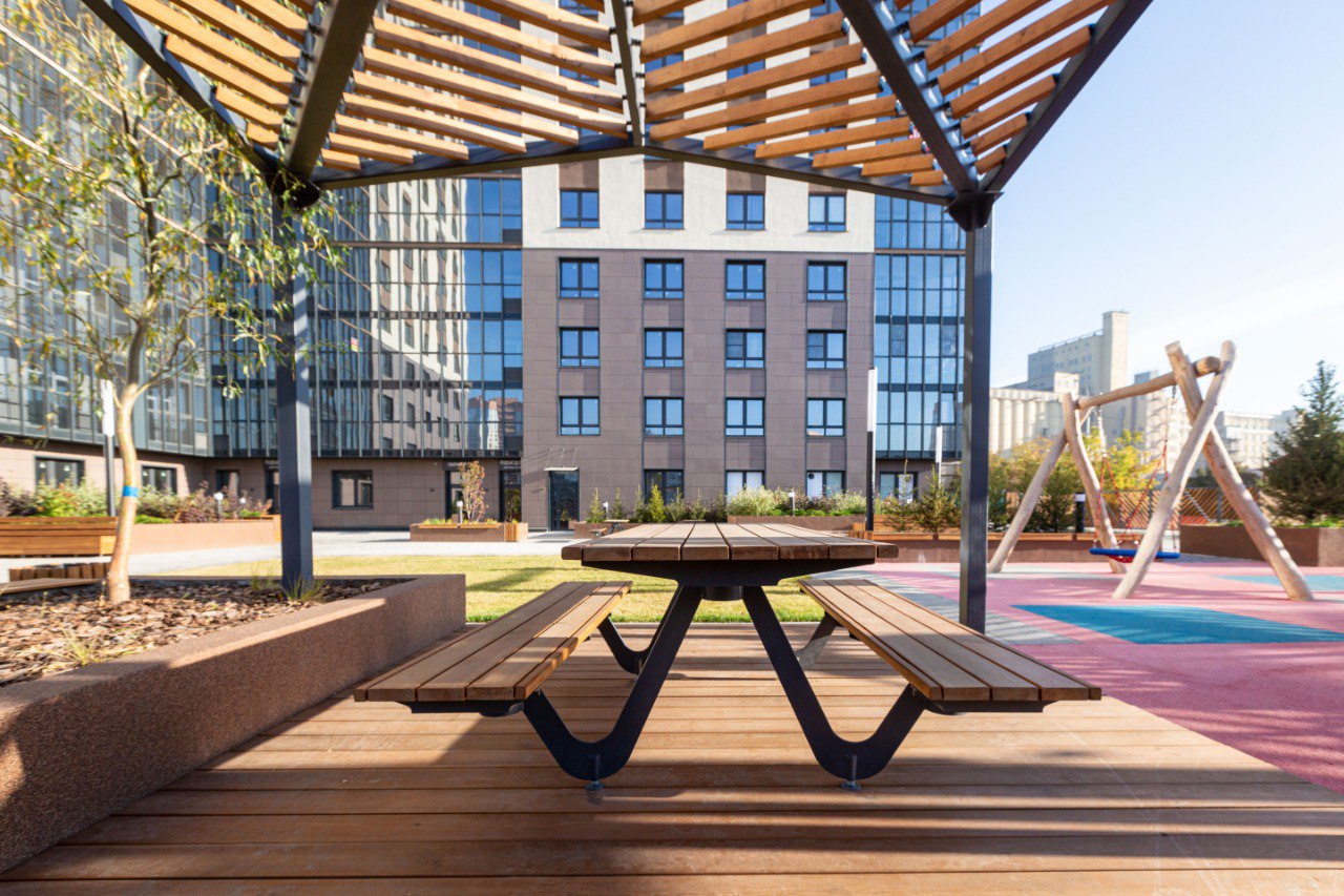 В «Расцветай на Обской» благоустроен уютный двор, где будет комфортно как детям, так и взрослым