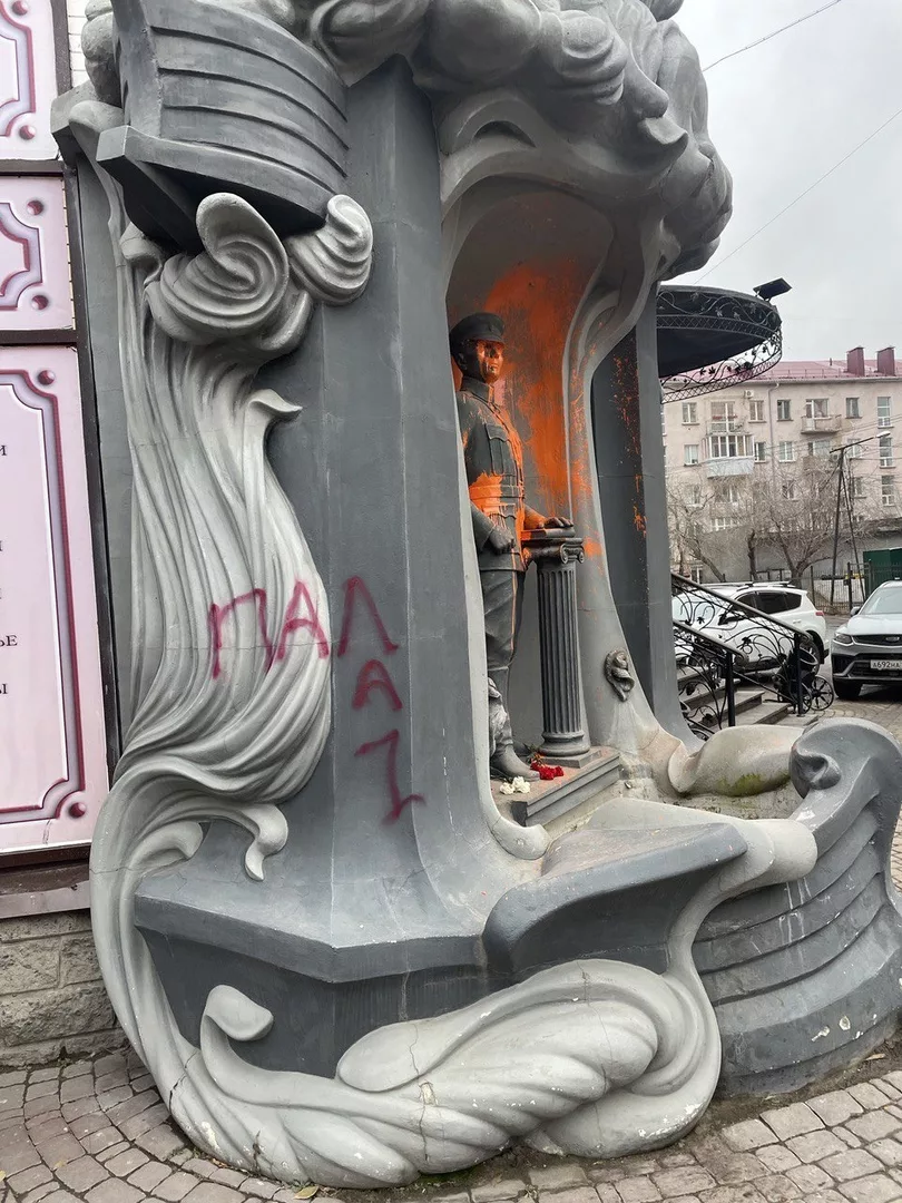 На опубликованных в местных соцсетях фотографиях скульптура адмирала, размещенная возле ресторана «Колчак» неподалеку от резиденции Верховного правителя России, облита оранжевой краской. Рядом красной краской сделана надпись «палач».