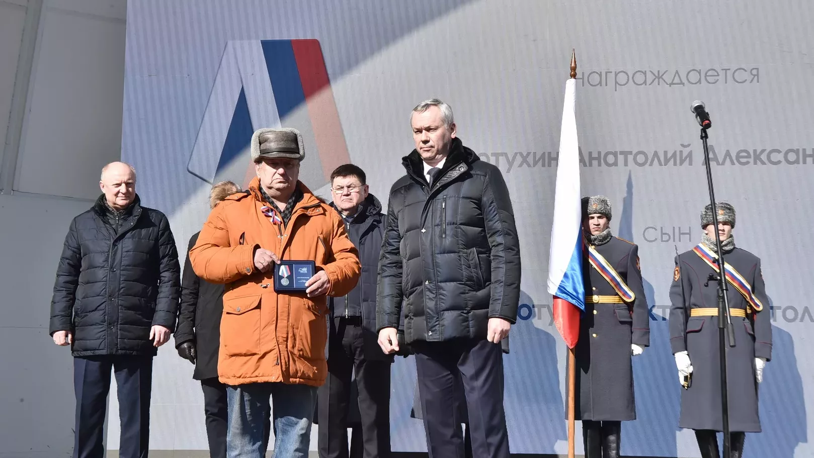 В ходе мероприятия Губернатор Андрей Травников вручил нескольким жителям Новосибирской области медали общественного признания «Отец солдата».