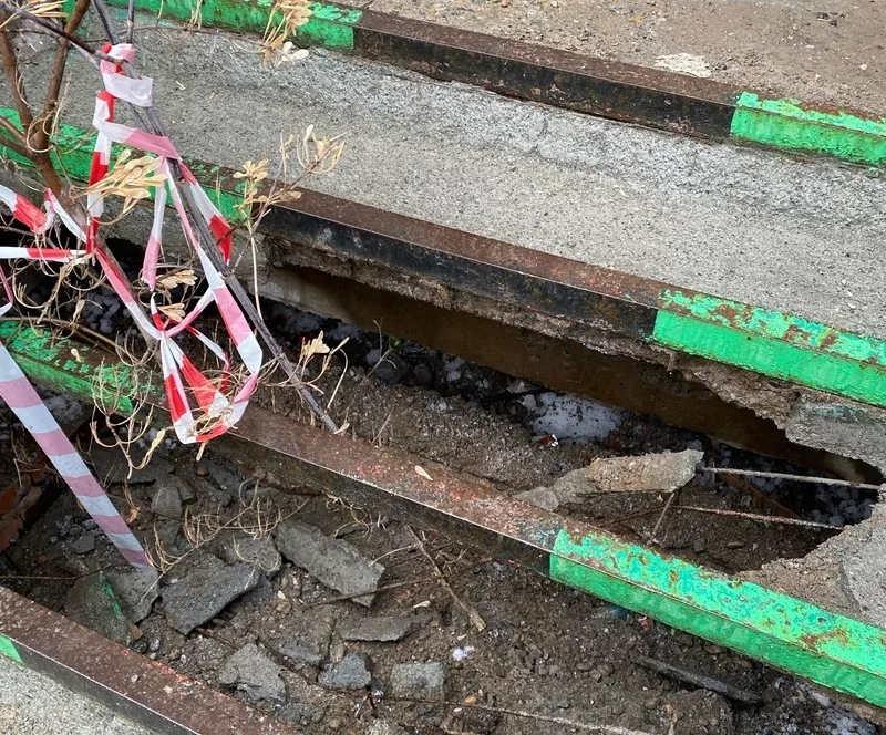 Происшествие случилось в Железнодорожном районе. Лестница рухнула у четвертого подъезда жилого дома на улице Владимировский спуск, 9.