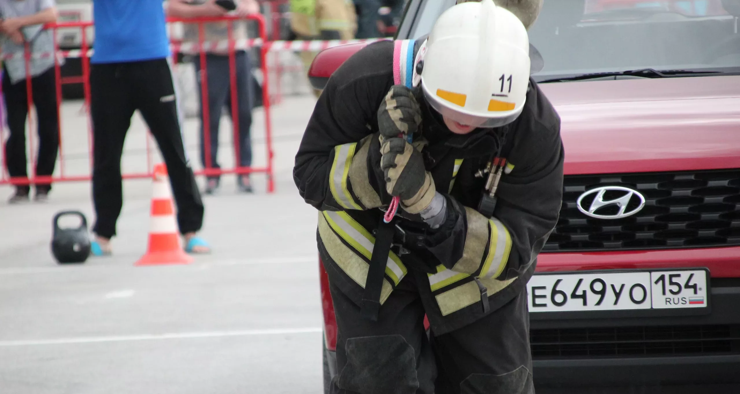 Пожарные выполняли толчок двух гирь весом 16 кг, их необходимо было поднять не менее 10 раз, далее спасатели прокладывали рукавную линию на 40 метров, а затем сматывали ее особым способом — «восьмеркой».