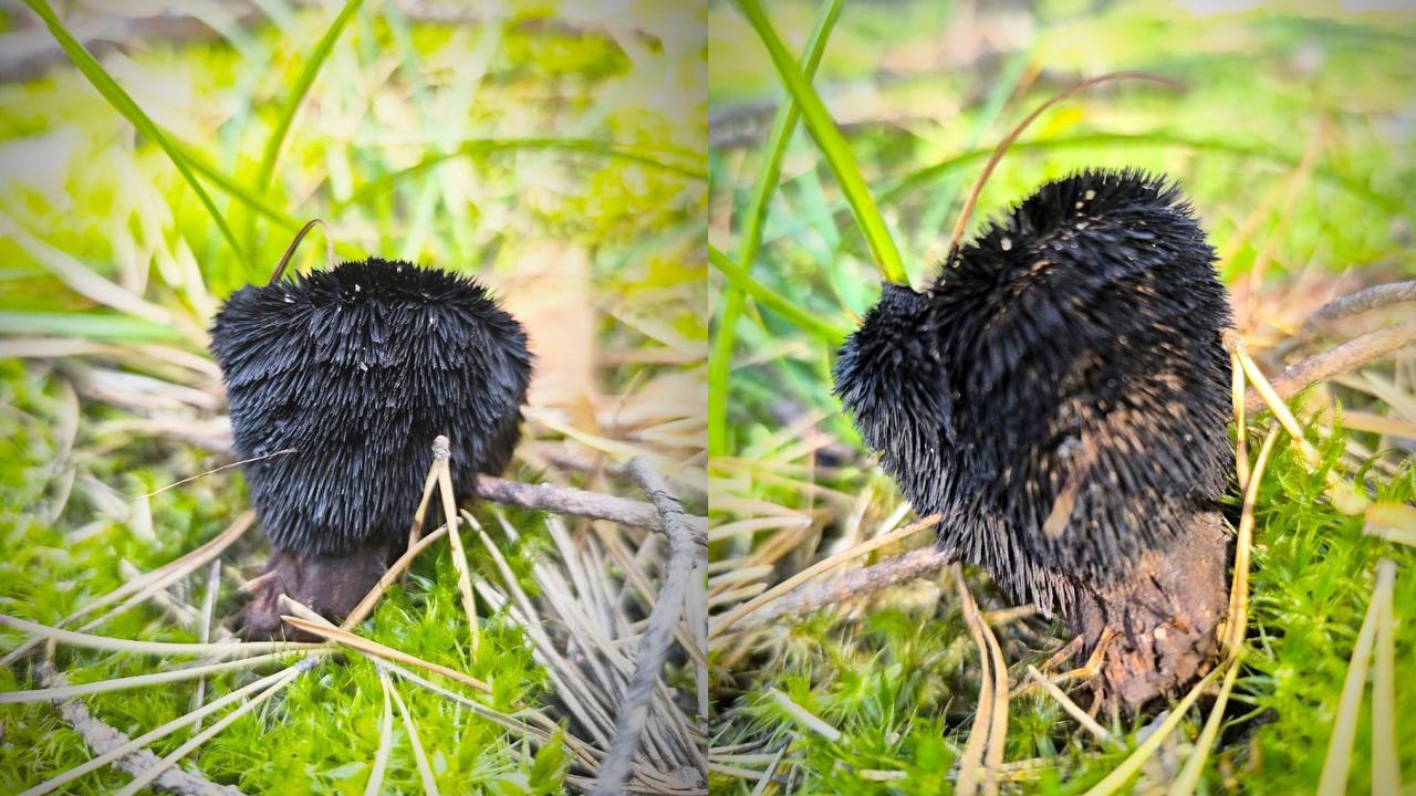 На черный мохнатый гриб наткнулась местная жительница. Фото со странной находкой женщина опубликовала в группе Вконтакте с просьбой подсказать, что это за вид.
