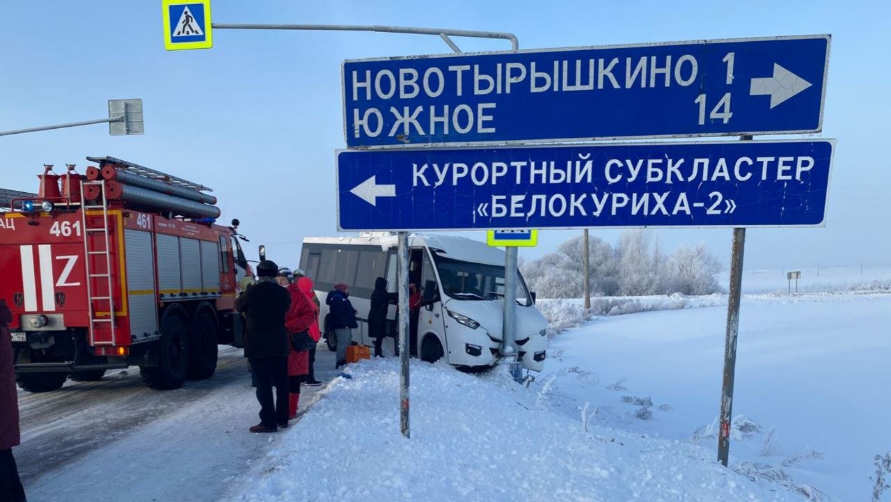 Микроавтобус с туристами врезался в столб в Смоленском районе Алтайского края. Сообщается, что водитель не справился с управлением. Внутри транспорта в это время находилось 18 человек, пятеро из них доставлены в Белокурихинскую горбольницу для осмотра.