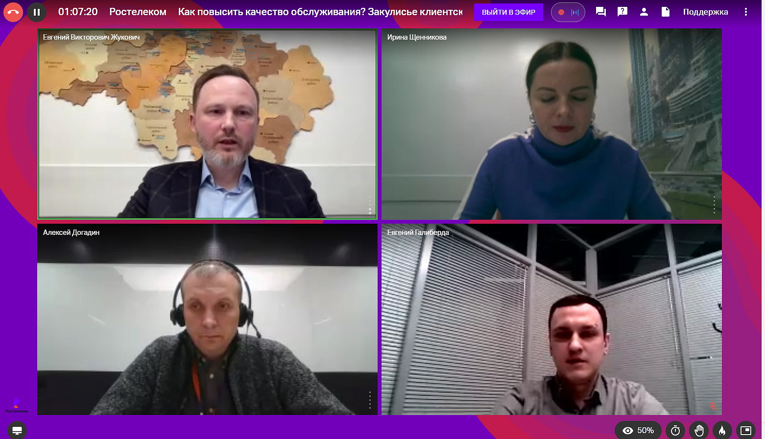 В вебинаре приняли участие специалисты провайдера: директор по клиентскому сервису массового сегмента «Ростелекома» Евгений Жукович, специалист департамента по клиентскому сервису массового сегмента «Ростелекома» Евгений Галиберда и директор центра компетенций интеллектуальных систем коммуникаций и управления данными «Ростелекома» Алексей Догадин.