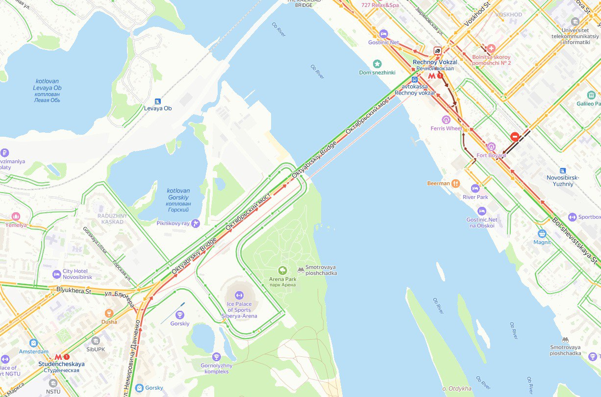 Жители Новосибирска встали в пробку на Октябрьском мосту протяженностью в 2,8 километра. Затор начинается с улицы Немировича-Данченко через мост вплоть до съезда на Зыряновскую улицу, следует из данных Яндекс Карт.