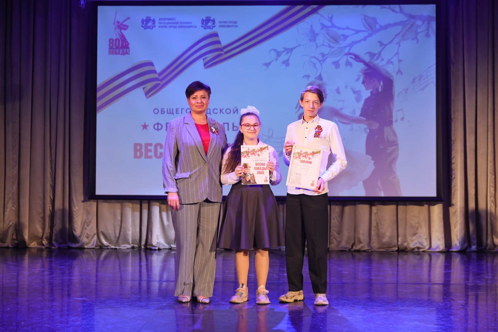 Церемонию награждения победителей открыла председатель жюри фестиваля «Весна Победы-2025», начальник управления по вопросам несовершеннолетних, опеки и попечительства мэрии города Новосибирска Наталья Базылюк. От лица начальника департамента по социальной политике мэрии Новосибирска Ольги Потаповой она поздравила всех с прошедшим Днем Победы и поблагодарила участников за их творчество: