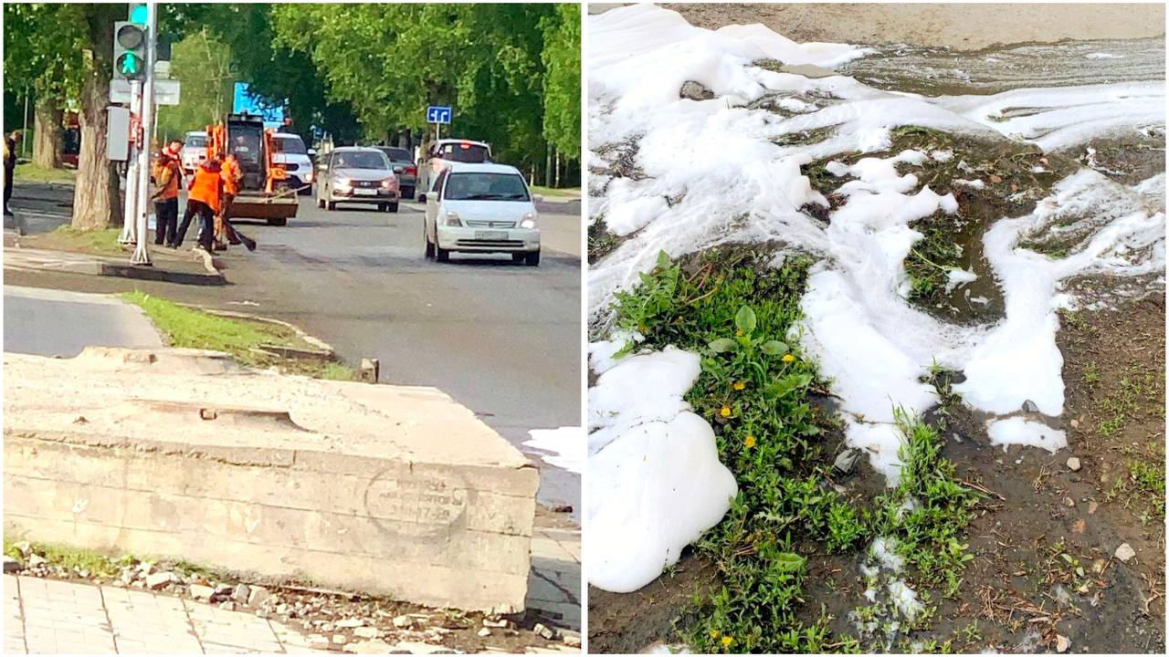Сегодня в Новосибирске на улице Бориса Богаткова были замечены рабочие, моющие асфальт шампунем. Фотографии уборки выложил основатель «Дорогого Новосибирска» Александр Назаров в своем Telegram-канале.