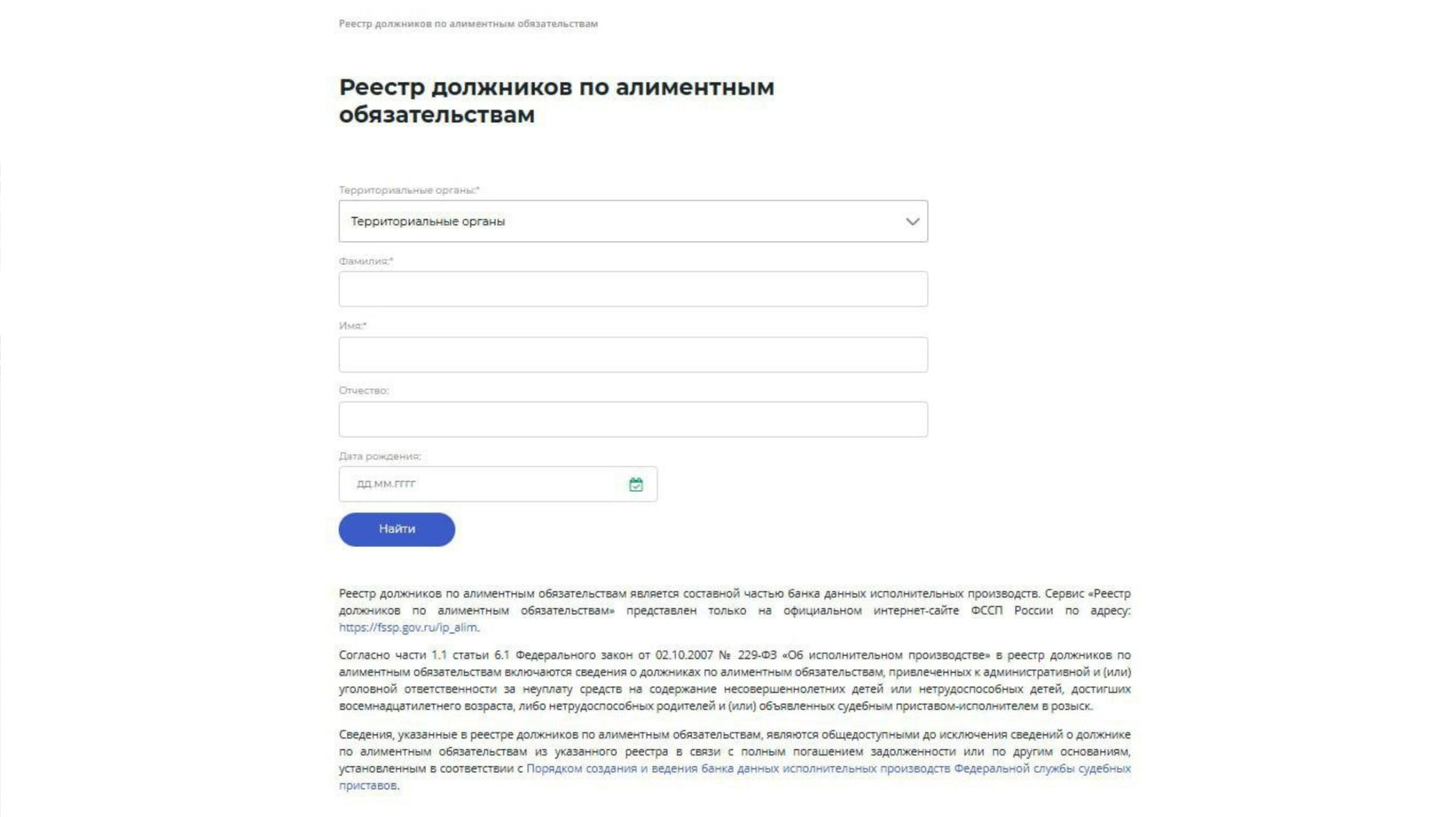 Общедоступный реестр алиментщиков заработал на сайте Федеральной службы судебных приставов с 25 мая. В этом убедился корреспондент НДН.инфо.