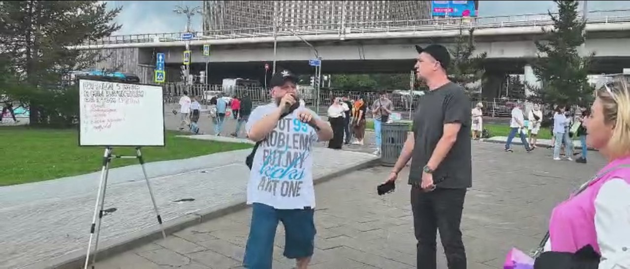 В свободное время они прогулялись по ВДНХ. Там под открытым небом столичного выставочного комплекса выступали уличные музыканты. Два рэпера предлагали прохожим что-нибудь написать на доске для рисования маркерами, у творческих молодых людей из этих слов сразу рождались слова шутливой песни.