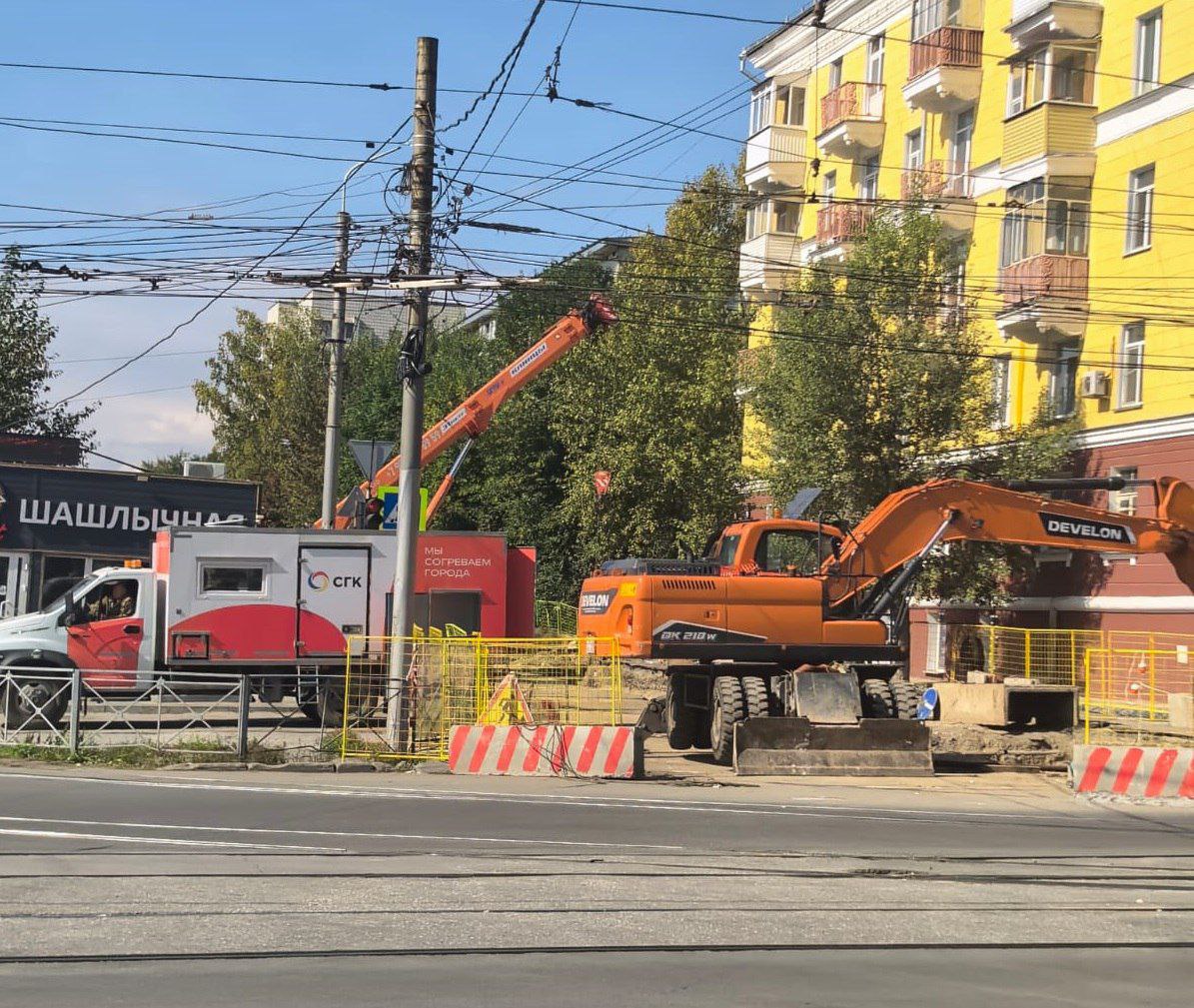 «В настоящее время завершаем работы на перекрестке улиц Сибиряков-Гвардейцев – Вертковская. Ведутся работы по замене трубопровода под проезжей частью – дефект, а также слабые места на стенках трубы выявили по итогам диагностики при помощи робота», — рассказали в компании.