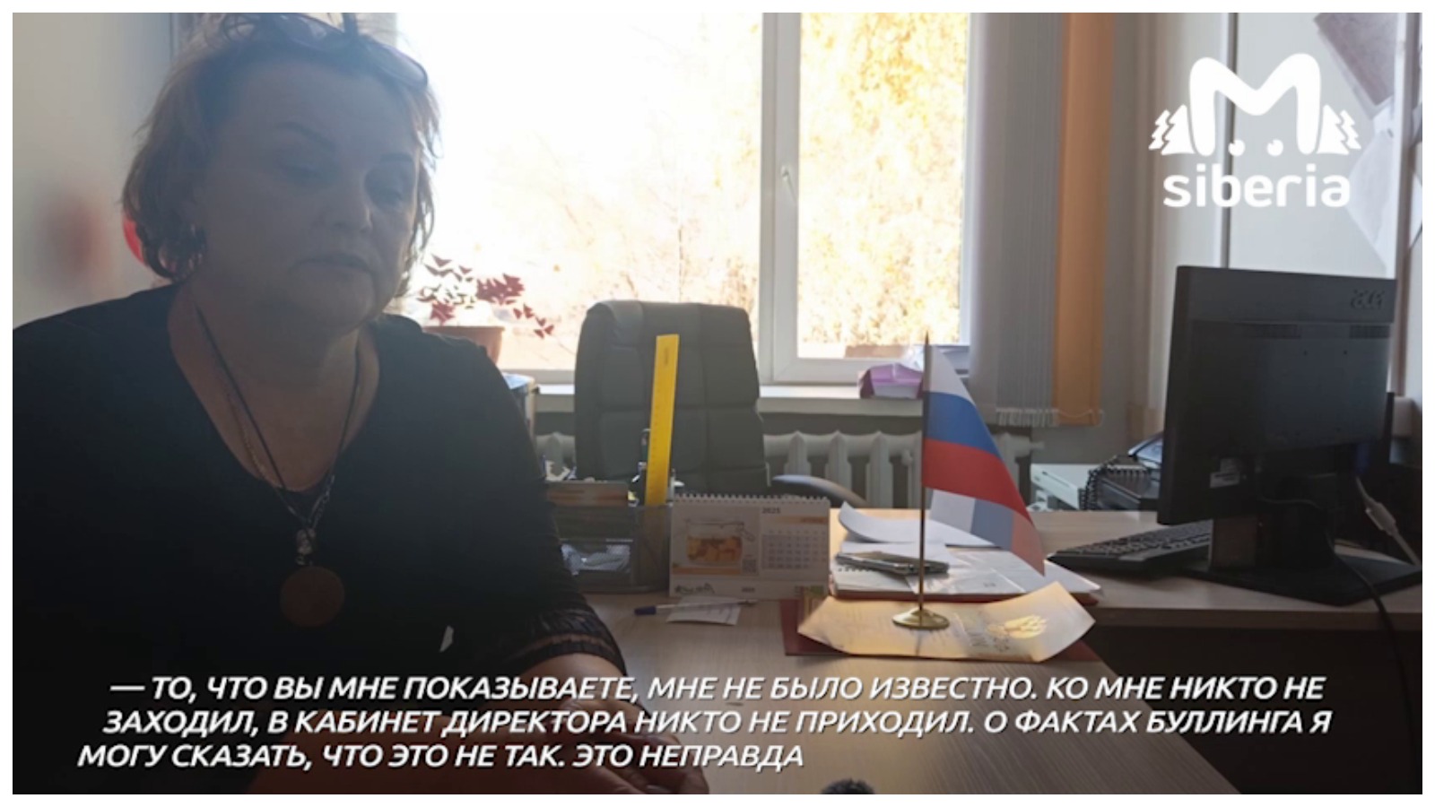 Уже известная нам Ольга Эбель заявила, что о насилии в стенах её школы она не знала, но пообещала собрать комиссию для разбирательства и обратиться в ПДН. Директор заявила, что массового буллинга в её школе вовсе нет, а ребята, которые кошмарят учеников, вообще занимаются общественно-полезной деятельностью.