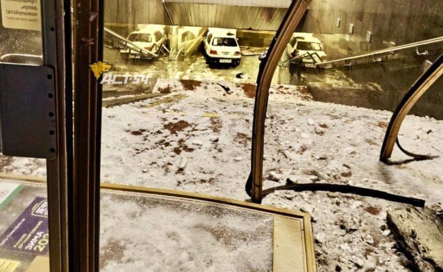 Поздно вечером в субботу, 22 ноября, в Новосибирске белый седан на большой скорости влетел во вход в метро «Золотая Нива».