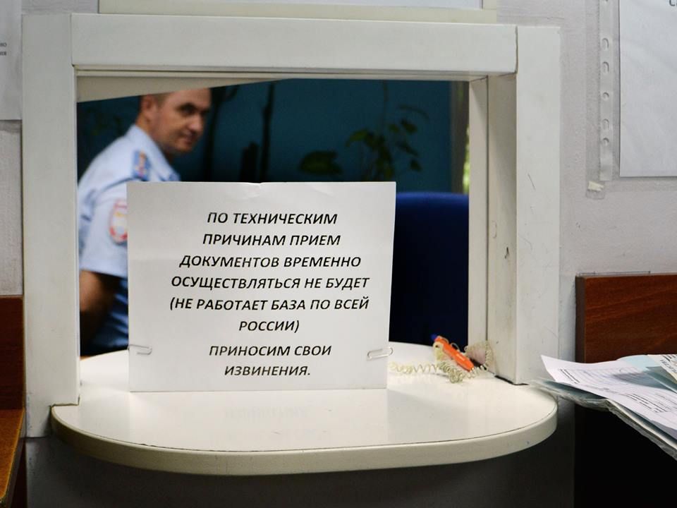 В четверг, 16 июля, новосибирский фотограф Евгений Иванов обратился в МРЭО ГИБДД Калининского района Новосибирска с тем, чтобы поменять просроченное водительское удостоверение. Простояв в очереди, Евгений увидел объявление, сообщающее о том, что по техническим причинам документы не принимают, и по всей России не работает база ведомства. Аналогичная ситуация была и на следующий день. Ничего не изменилось и 18 июля. Евгений меж тем, как и очвидно еще тысячи автолюбителей, ездит, сам того не желая, с недействительными документами.